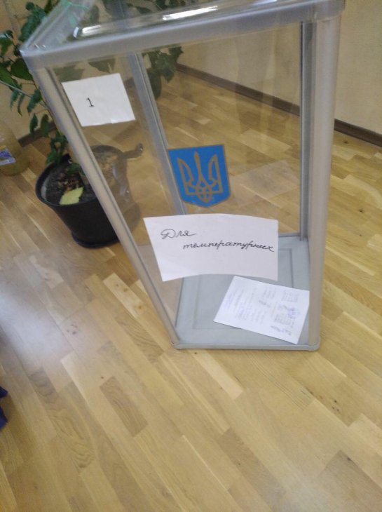 У селі Підбірці у приміщенні дільниці №460988 є окрема скринька для тих, у кого виявили температуру. На ній напис «для температурних».