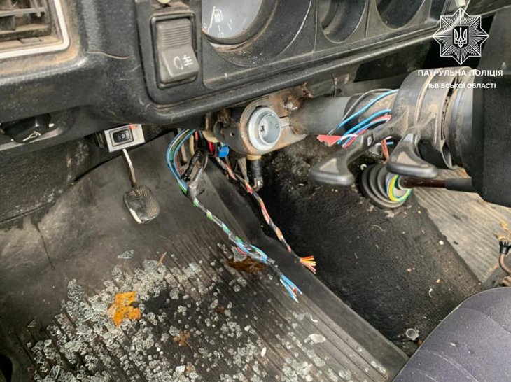 Неподалік був екіпаж патрульної поліції 2 батальйону і одразу зупинив згадане авто. За кермом був 58-річний львів'янин з ознаками алкогольного сп'яніння. Також, автомобіль мав розбите вікно і під кермом звисали дроти, що могло свідчити про його незаконне заволодіння.