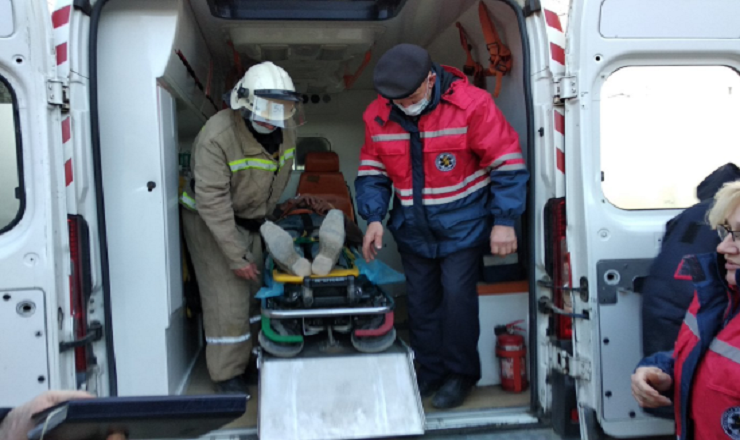 О 15:10 до рятувальників надійшло повідомлення від працівників швидкої медичної допомоги про те, що чоловік упав з риштування даху господарської будівлі на бетонне перекриття. Внаслідок падіння він отримав травму хребта, не може самостійно спуститися, та потребує транспортування до лікувального закладу.