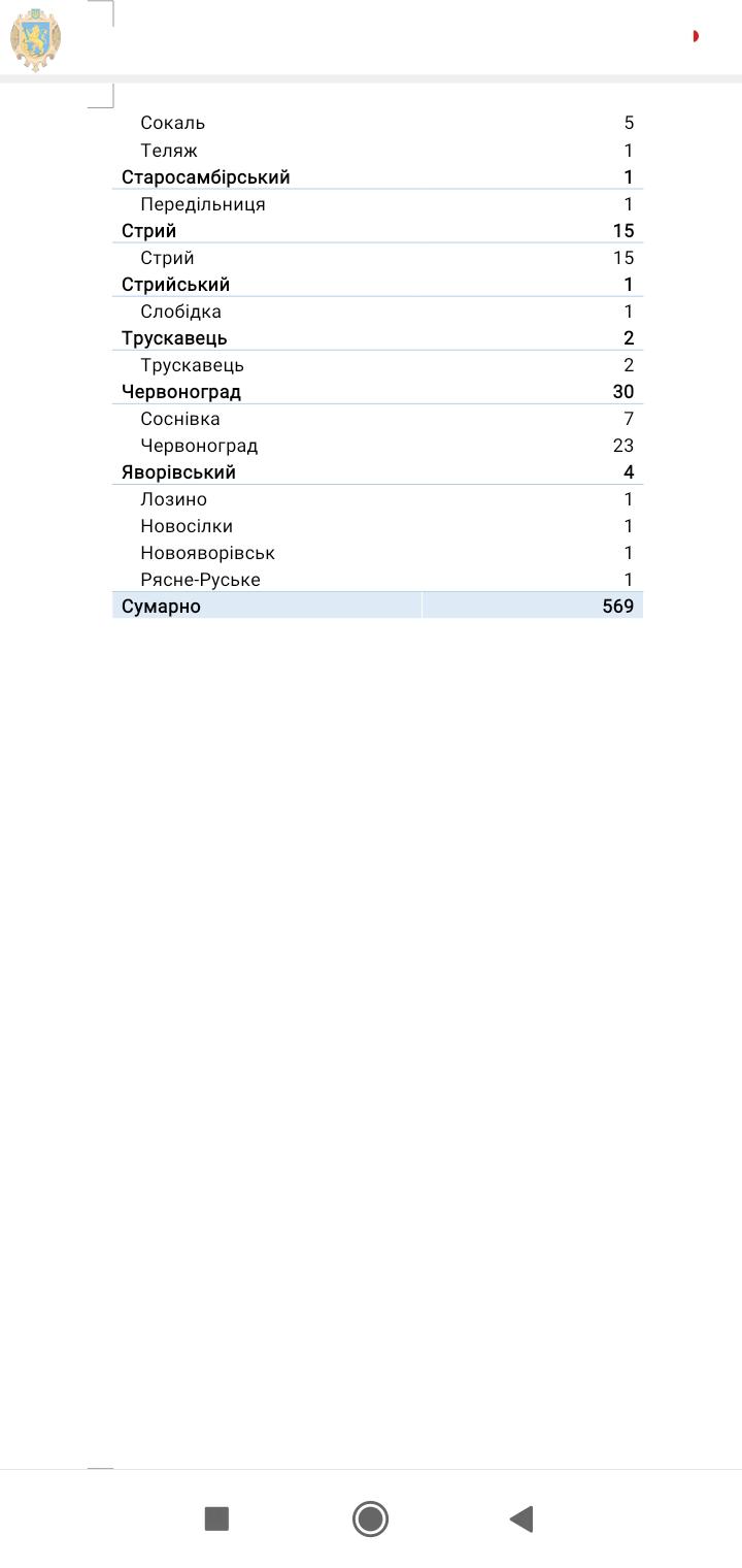 За добу на Львівщині підтвердили 569 випадків коронавірусу