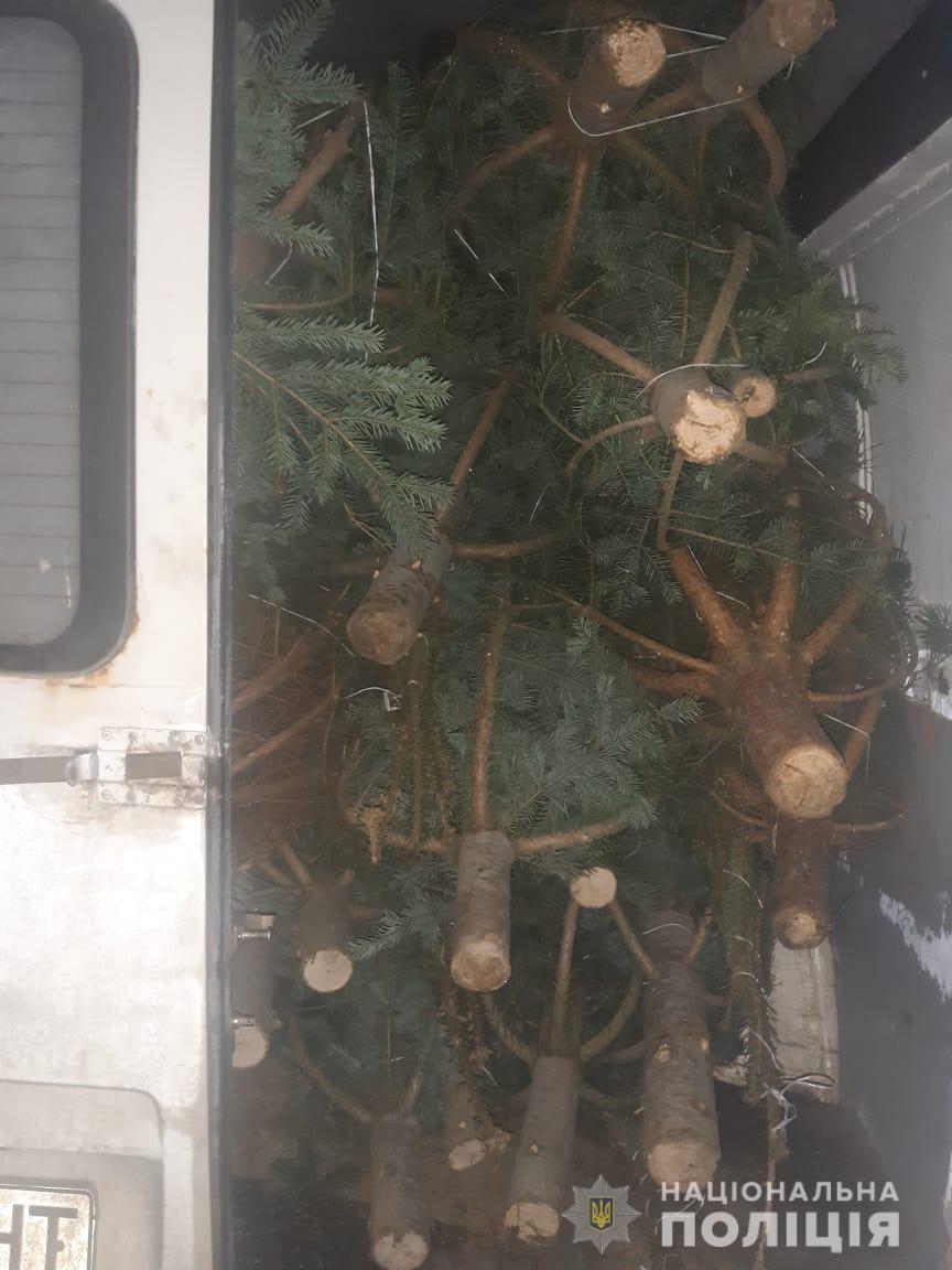 Поліцейські вилучили 46 незаконно зрубаних ялинок, а також мікроавтобус, яким зловмисник перевозив дерева.