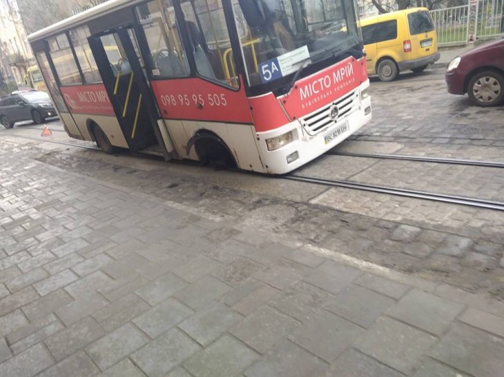 У четвер, 2 листопада, близько 12:00 на вул. Мечнікова у Львові на ходу відпало переднє колесо в автобусу, який обслуговує маршрут 5А (пл. Різні – Винники).