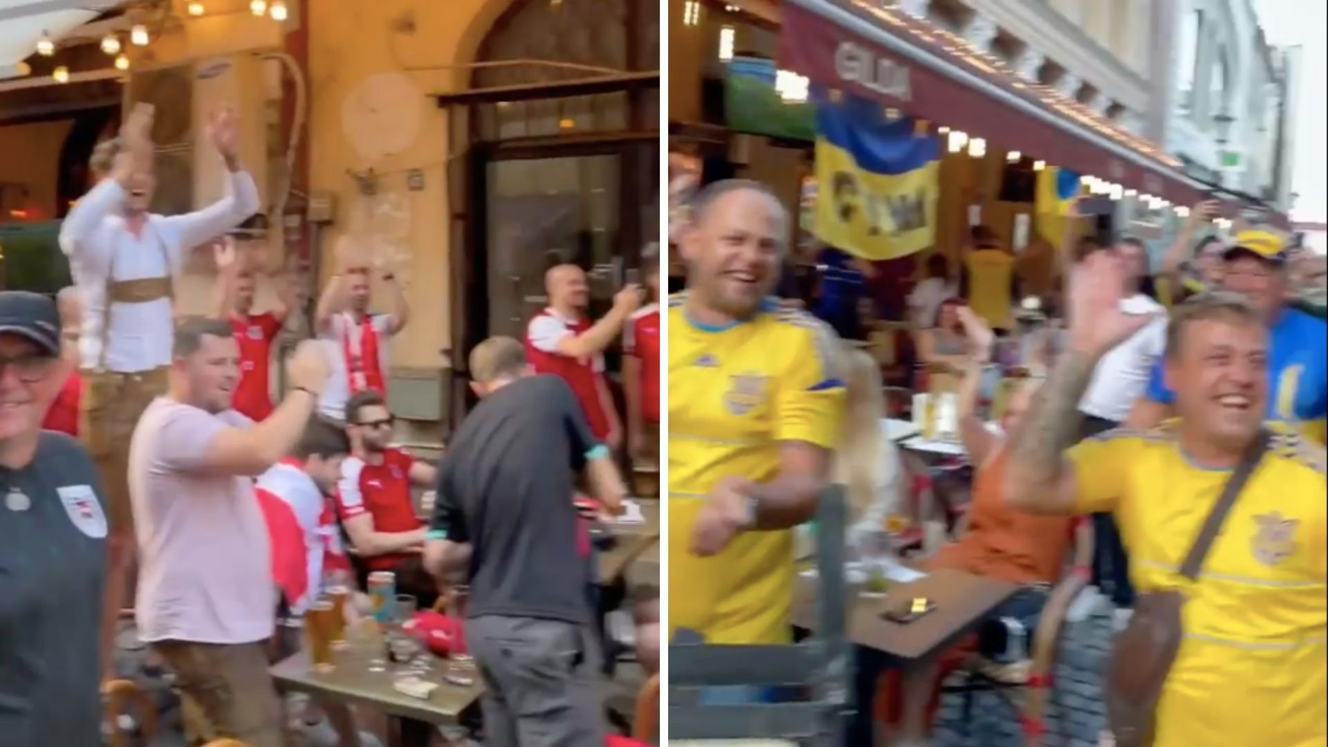 "Шанувальники України та Австрії зібралися разом у старому місті Бухареста, щоб заспівати знамениту пісню про президента Росії. "Путін Ху**оооооо! ла-ла-ла-ла-ла-ла-ла-ла..." - підписано відео.