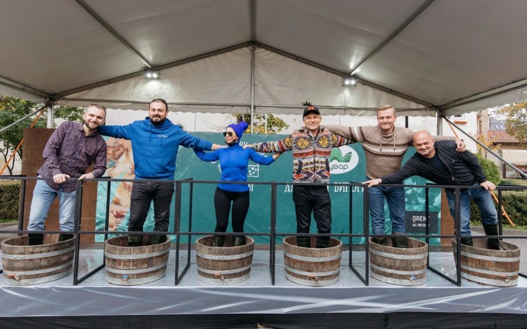 У Львові на Святі сиру і вина Олег Скрипка ногами чавив виноград