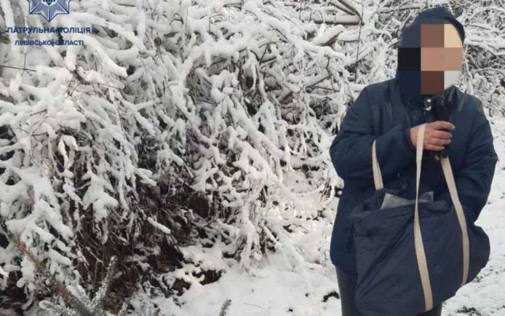 У парку, неподалік середмістя Львова, патрульні затримали 60-річну жінку, яка серед білого дня спиляла молоду ялинку.