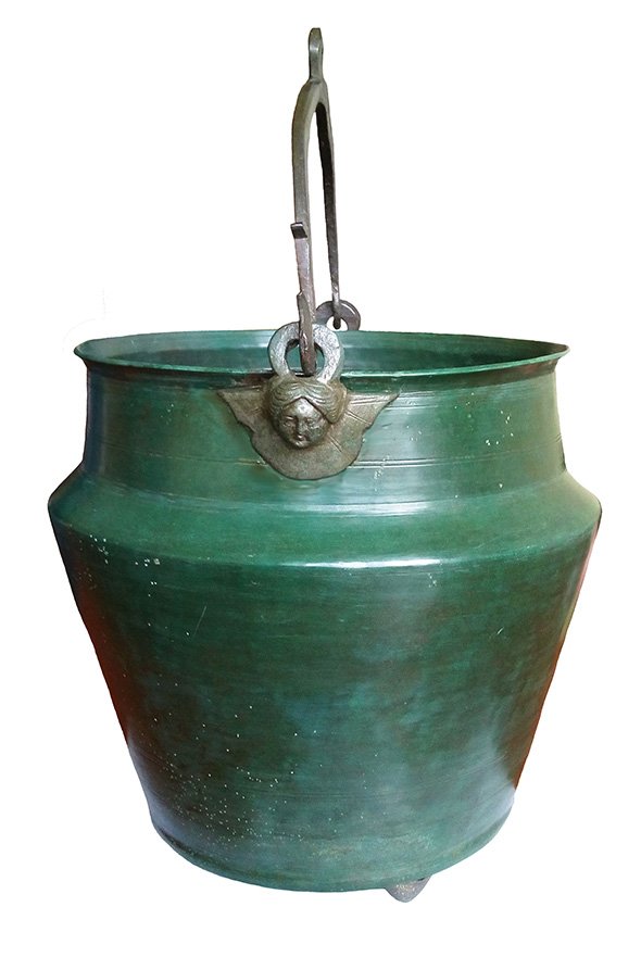 Поховання вождя також відрізнялося тим, що перепалені людські кістки поклали не просто в ямку, а склали в один із двох бронзових казанів, віднайдення яких вважають чи не найбільшим успіхом. Один – простіший, а ось інший – справжній скарб для науковців. Його прикрашають розкішні підвіcи у вигляді бюстів свебських воїнів. На сьогодні відомо лише два схожі казани: один було знайдено під час розкопок у Чехії, інший – у Польщі. Він і став «домовиною» для лідера племені.