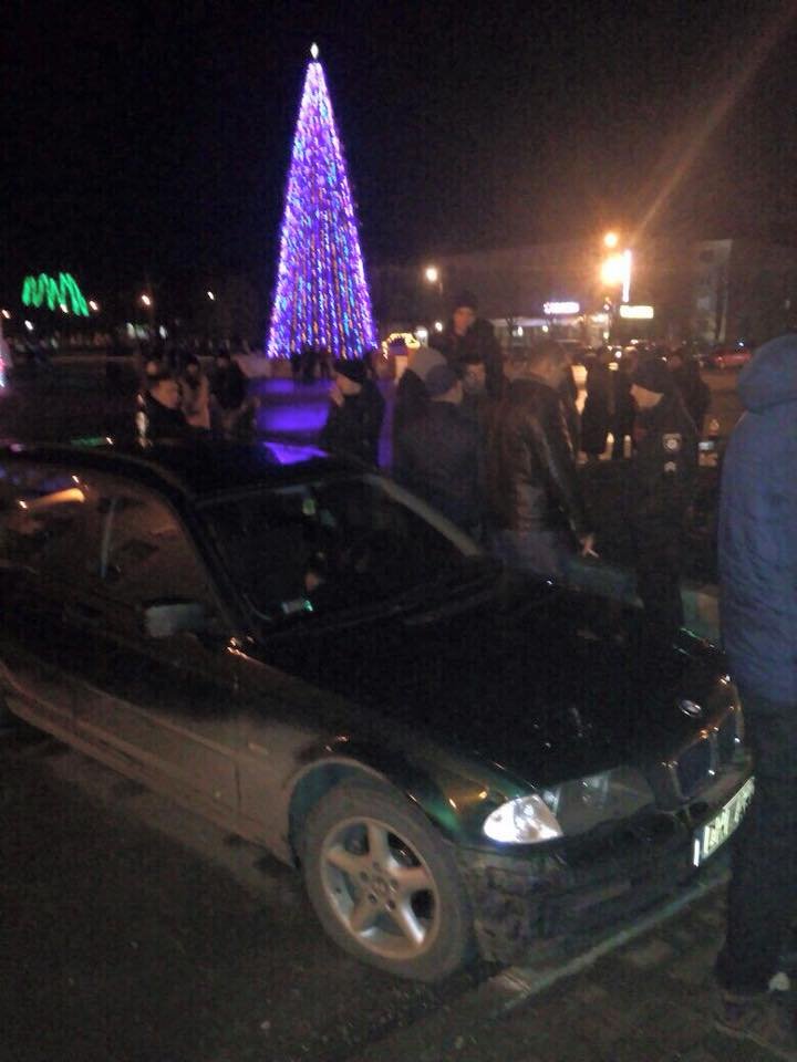 У Червоноградський відділ поліції 1 січня надійшло повідомлення про те, що в центрі міста водій автомобіля «БМВ», порушивши правила дорожнього руху, заїхав на Вічеву площу, де встановлена новорічна ялинка.