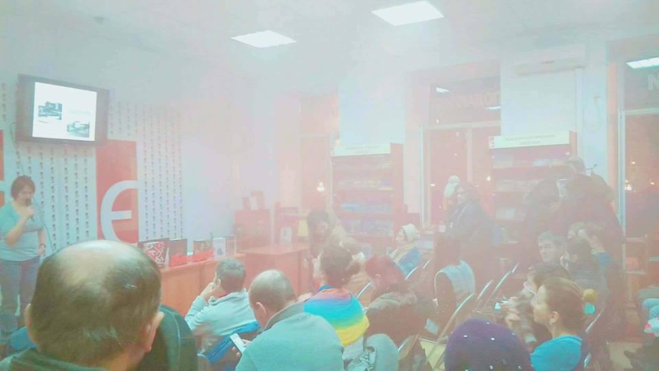 У книгарні "Є" уточнили, що підліток 15-16 років і закритим обличчям кинув запалену димову шашку на сходах між першим і другим поверхом, після чого втік. Димову шашку майже відразу виніс на вулицю один із слухачів лекції.