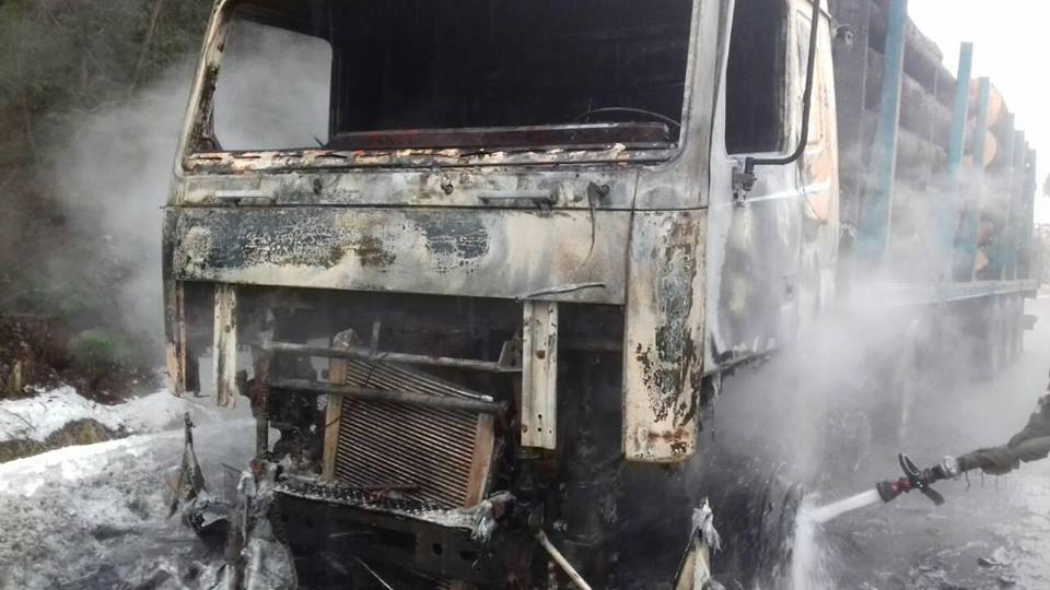 Вантажівка з деревиною вщент згоріла на Львівщині (ФОТО)