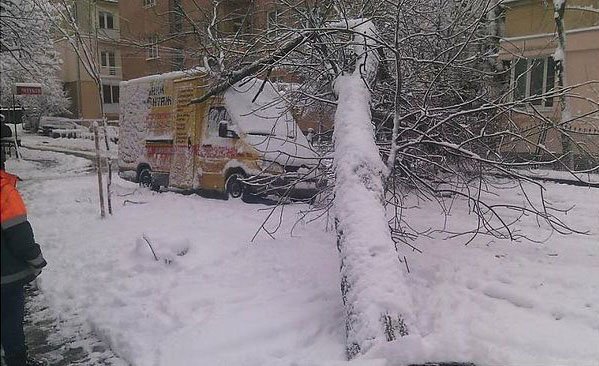 У вихідні через снігопад у Львові впало 92 дерева, пошкоджено 8 автомобілів
