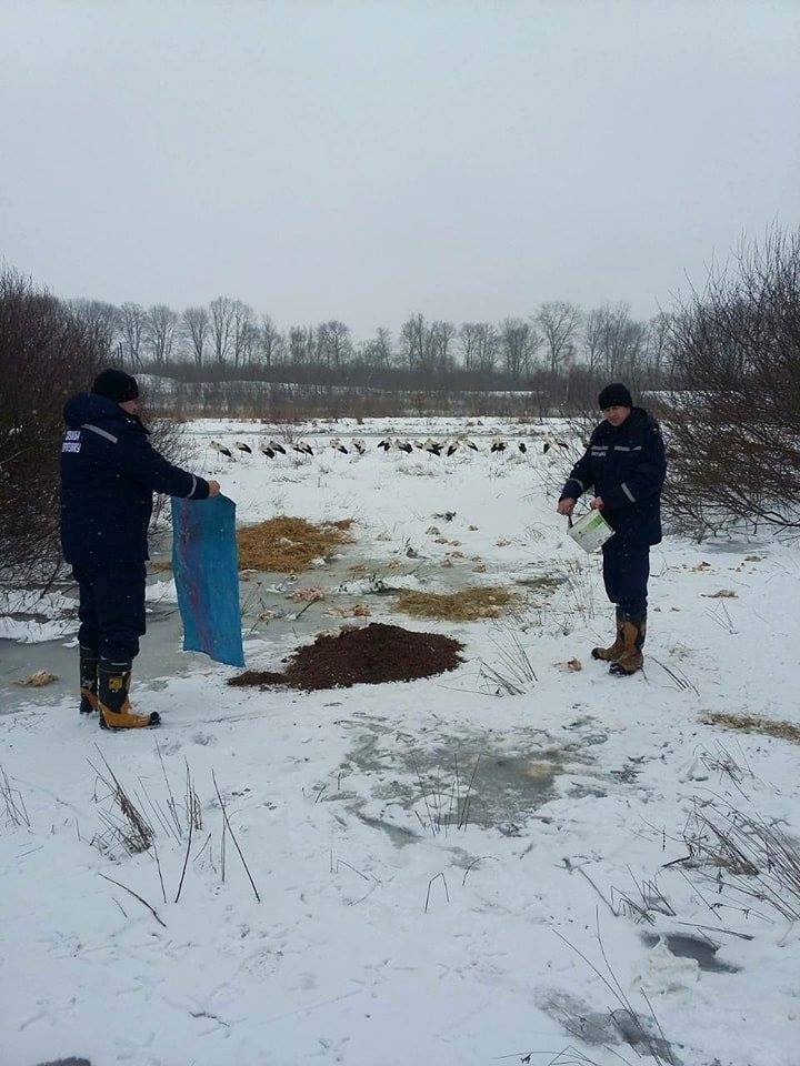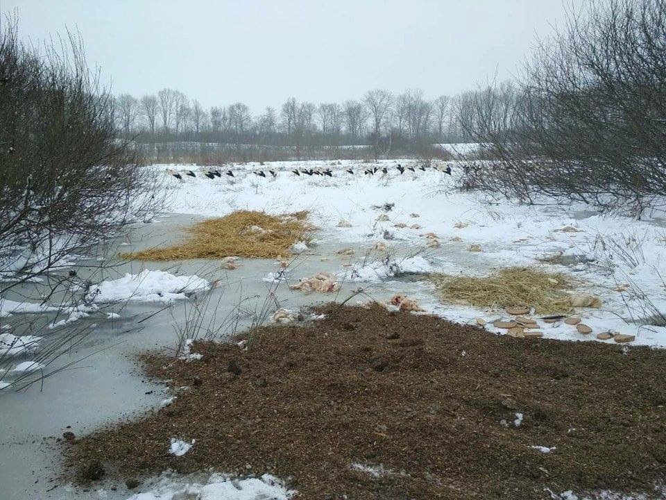 На відстані 10-15 м до місця розташування птахів очистіть невелику ділянку землі та застеліть її соломою, сіном, хмизом, дрібними гілками тощо. Саме там можна буде врятуватися більшій кількості птахів. На це місце приносьте птахам їсти: відходи риби чи м'яса, однак не давайте свинину і сало. Лелеки споживають тваринну їжу, проте птахів можна годувати і сумішшю вареної картоплі з необсмаженим насінням соняшника, зерно, хліб», – йдеться у повідомленні.