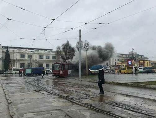 На площі Двірцевій, що поруч із залізничним вокзалом у Львові загорівся трамвай.