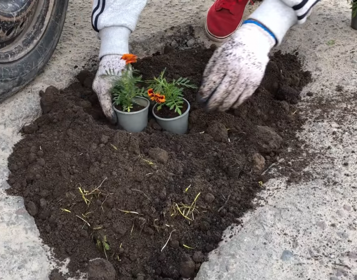 Було висаджено 38 вазонів чорнобривців. Квіти садили спеціально в одноразових посудинах, аби «жеківці» змогли їх згодом висадити в інших місцях.