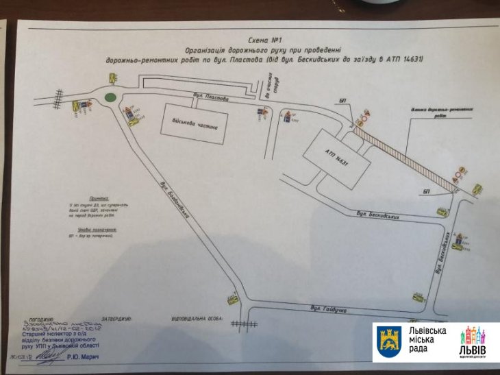 Як повідомили в департаменті житлового господарства та інфраструктури ЛМР, з понеділка, 16 квітня, з 10.00 год і до 22.00 год 30 листопада 2018 року буде перекрито рух транспорту на вул. Пластовій (від вул. Богданівської до вул. Бескидської).