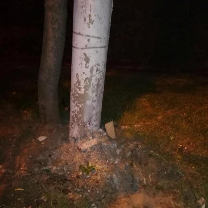 Вночі у Львові п'яний водій на польських "бляхах" врізався у стовп (ФОТО)
