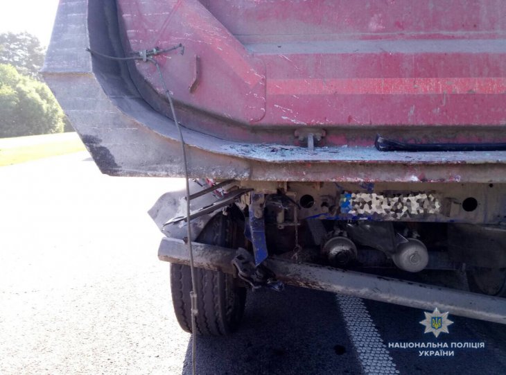 Поліцейські встановили, що сталося попутне зіткнення двох транспортних засобів – мікроавтобуса та вантажного автомобіля.
