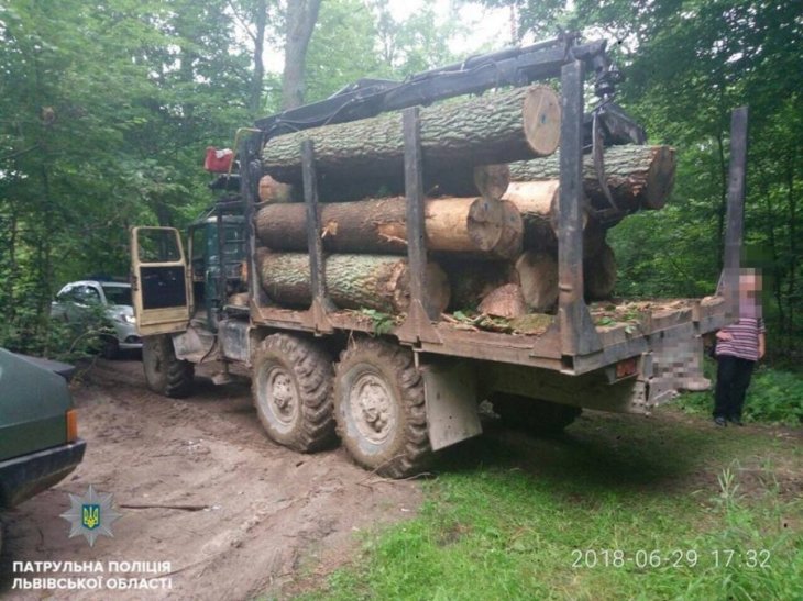 «Вчора, під час патрулювання на автодорозі Львів – Краковець, екіпаж патрульної поліції 2 батальйону помітив в лісі автомобіль «Урал», водій якого зупинився та почав рухатися заднім ходом, як тільки побачив службовий автомобіль поліції.