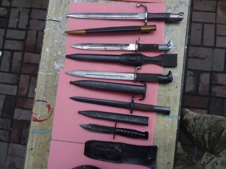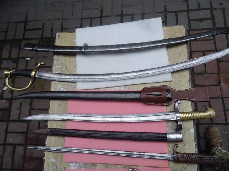 Сьогодні вранці, 3 липня, в пункті пропуску «Краківець», під час огляду автомобілів якими подорожні слідували на в’їзд в Україну, прикордонники разом з працівниками митниці ДФС виявили декілька одиниць холодної зброї. Чотири багнети, 3 шаблі та військовий шолом перевозив по смузі руху «зелений коридор» поміж пакунків з особистими речами у своєму мікроавтобусі марки Мерседес 29-річний мешканець Чернівецької області.