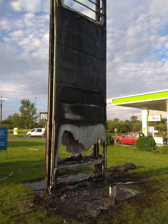 Внаслідок пожежі вогонь знищив світодіодну стеллу АЗС. Постраждалих немає. Наразі всі обставини та причини загорання встановлюються.