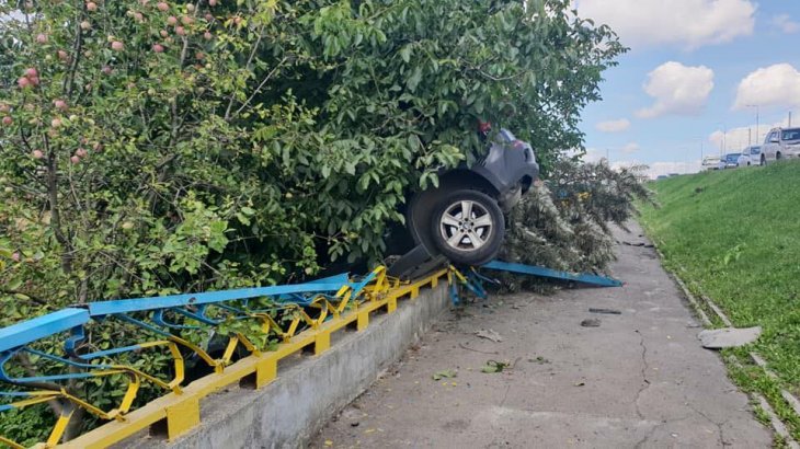 На Сихівському мосту автомобіль пробив обгорождення та повис на задніх колесах