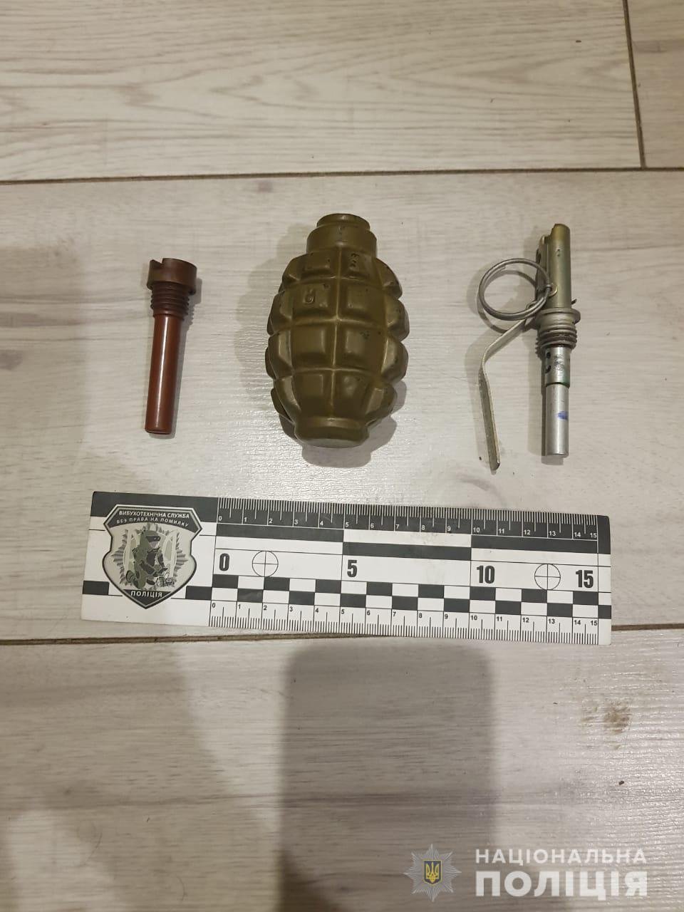 Під час огляду правоохоронці виявили та вилучили гранату Ф-1, запал до неї та патрони калібру 5.45 мм. Усе скеровано на експертне дослідження.
