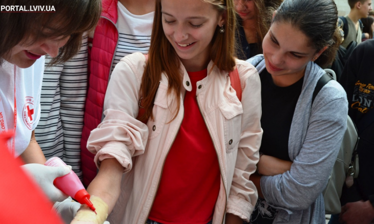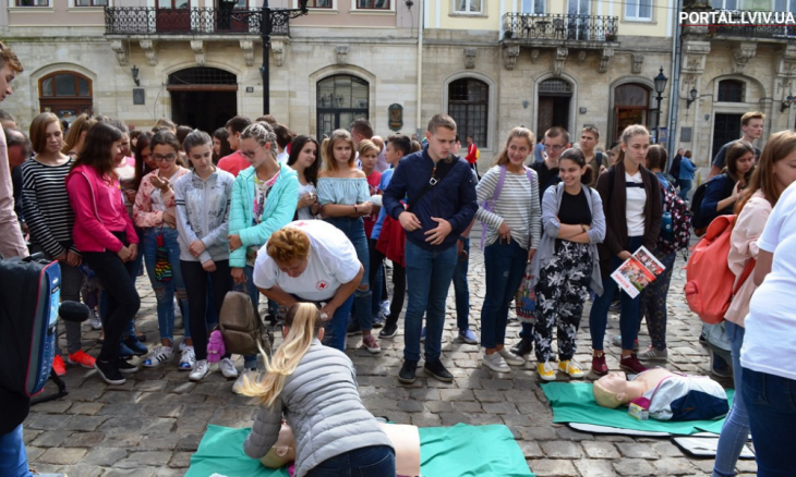 За словами тренера по наданню першої допомоги Львівської обласної організації Товариства Червоного Хреста Ірини Валько, ця акція присвячена Всесвітньому дню Першої допомоги, який відзначатимуть завтра.