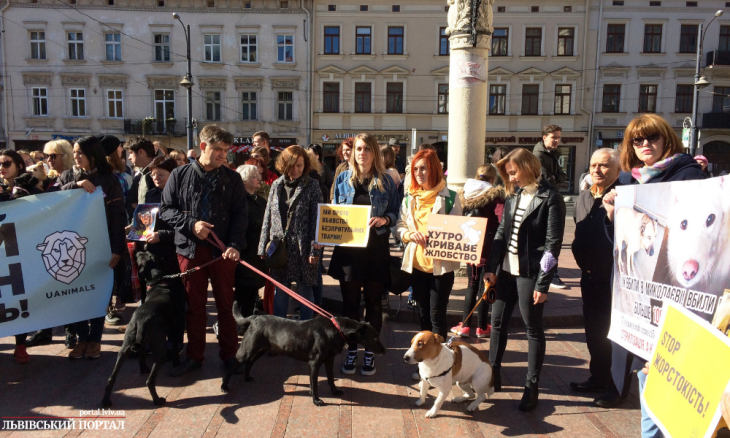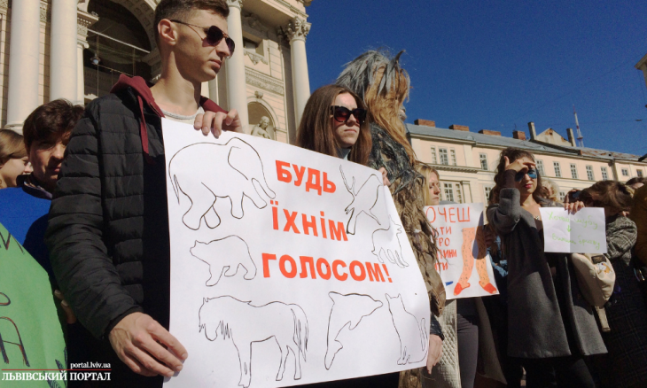 Всеукраїнський марш за права тварин одночасно пройшов у 20 містах України. У Львові учасники заходу зібрались поблизу Оперного театру та пройшли центральними вулицями міста до площі Ринок.