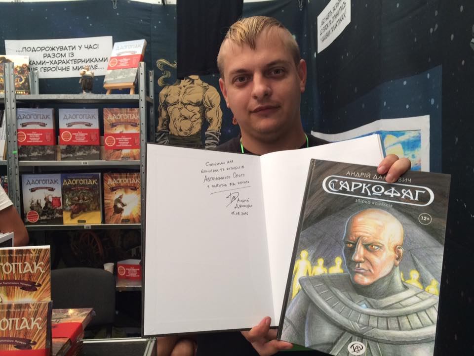 «Ми (з видавцем Дмитром Хмарою – Ред.) написали листа організаторам із запитанням, чи можливо взяти участь у Comic-Con в принципі. Нам відписали, що велика черга, потрібно чекати кілька років. Мовляв, минулого року у нас брали участь росіяни, вони чекали три роки, але, про всяк випадок, надішліть свої роботи і заповніть заявку. Ми так і зробили, ні на що не сподіваючись. А через кілька місяців нам надійшло повідомлення: ви запрошені, бронюйте стіл і приїжджайте», — розповів Андрій Данкович.