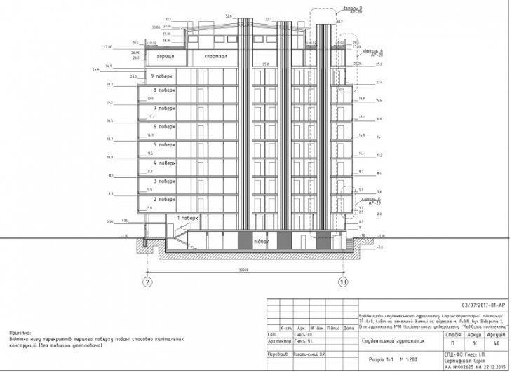 У гуртожитку буде 9 поверхів, підвал та горище з приміщенням для занять спорту в центральній частині.