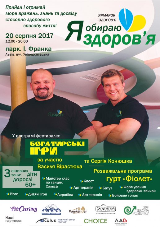 У неділю, 20 серпня, з 12:00 по 20:00 у парку Івана Франка відбудеться фестиваль «Я обираю здоров’я» , метою якого є заохотити якомога більше людей до здорового способу життя. Про це повідомляють організатори фестивалю.