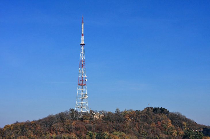 Суцільнометалева просторова ґратована телевізійна вежа стоїть на Замковій горі, і без неї не обходиться жодне туристичне панорамне фото.