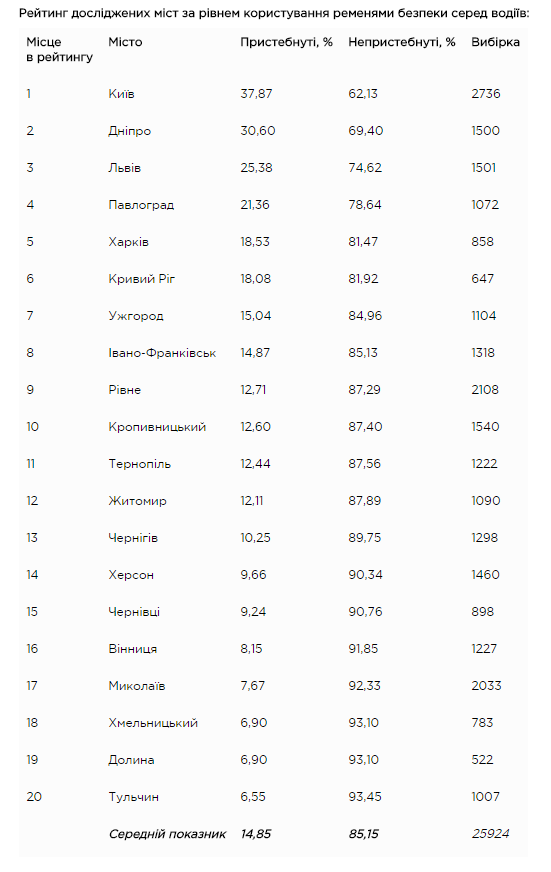 Назвали топ-3 міста, де найчастіше користуються пасками безпеки (Інфографіка)
