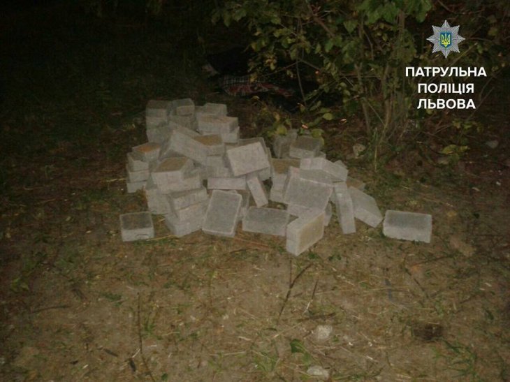 Минулої ночі до них надійшов виклик від небайдужого громадянина, який став свідком того, як у сутінках двоє осіб на вулиці Княгині Ольги крали тротуарну бруківку.