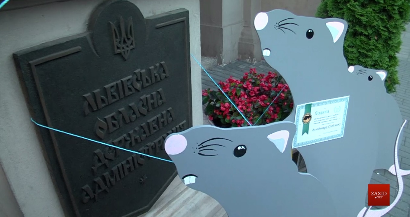 Під стінами Львівської ОДА "пацюки" дякують владі за сміття