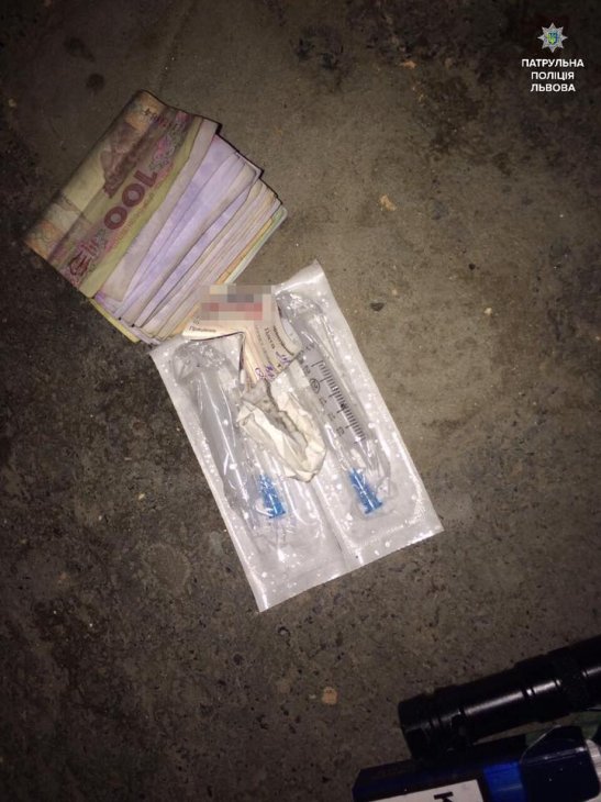 Інспектори почали перевіряти прилеглі вулиці та в одному з дворів неподалік від місця події виявили підозрілих осіб. Чоловіки побачили патрульних, розвернулися та пришвидшили хід. Інспектори зупинили осіб та попросили пред'явити документи. Чоловіки сказали що не мають їх з собою. Патрульні провели поверхневу перевірку та виявили документи, які були викрадені в заявника, грошові кошти у сумі 997 гривень, два мобільні телефони, шприци, таблетку "Субітекс", краплі для очей та ліхтарик.