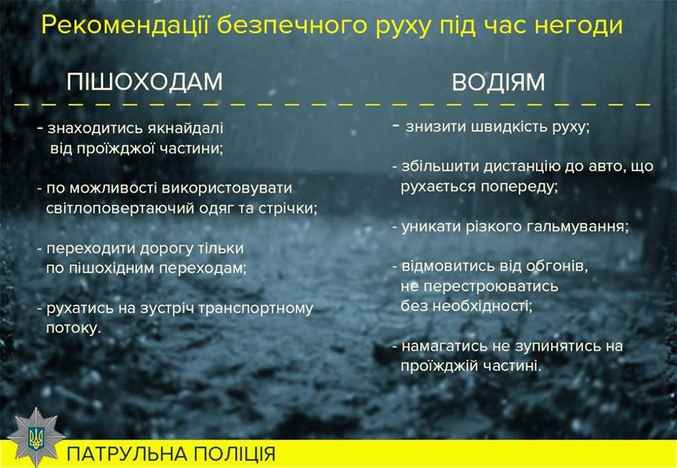 3. Якщо дощ тільки починається, тоді саме час зменшити швидкість руху на 15%, збільшити дистанцію та інтервал між автівками. Уникати обгонів, різких маневрів .