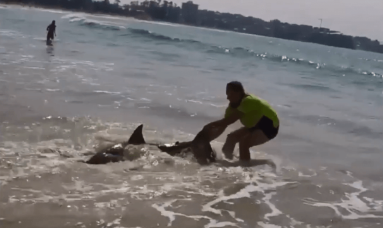 Навколо акули, яка застрягла на березі, почав збиратися натовп відпочивальників. 33-річний чоловік швидко скинув штани, схопив акулу за хвіст і потяг назад в воду.