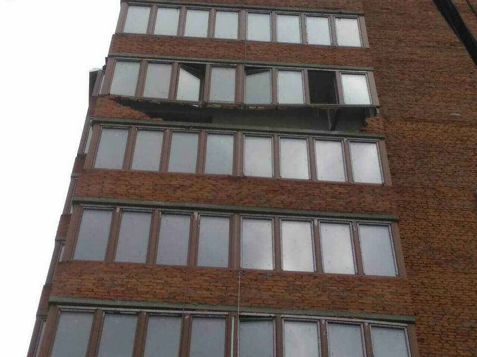 Нічна негода 6 жовтня зруйнувала чотири балкони новобудови на вул. Шевченка, 418 у Рясному. Із трьох веранд повипадали цеглини та пластикові вікна, один балкон зруйнований частково – із нього випало скло.