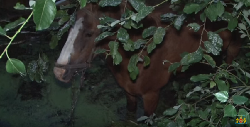 У Львівській області рятувальники витягали коня, який упав у штучне водоймище