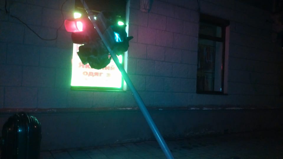 Сьогодні, 22 травня, близько третьої години ночі на перехресті вулиць Куліша та Зернової кілька молодиків зламали світлофор.