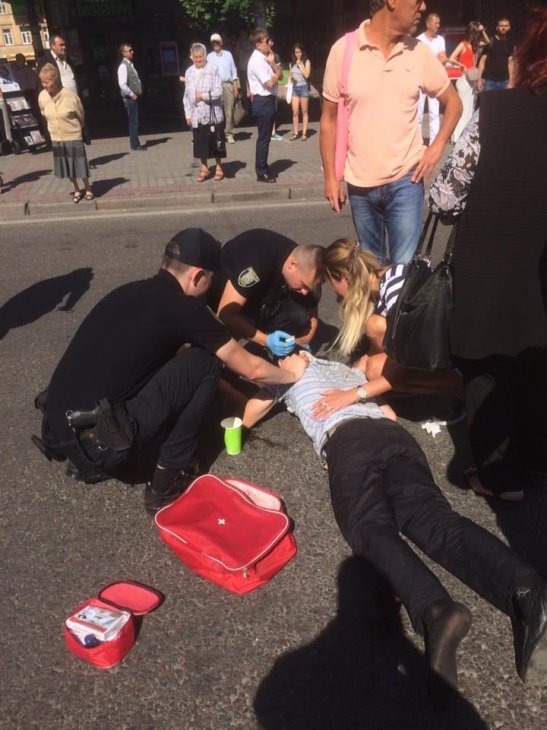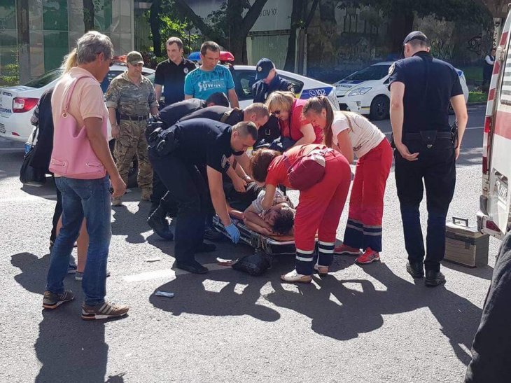Очевидці події викликали небхідні служби на допомогу. Поліцейські приїхали раніше і встигнули надати чоловікові першу медичну допомогу. Згодом медики забрали потерпілого в лікарню.
