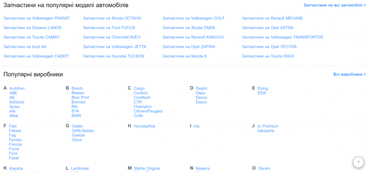 - пошук запчастин по номеру або параметрам авто (модель, рік випуску, торгова марка, тип кузова, двигун і т.д.) за кілька хвилин;