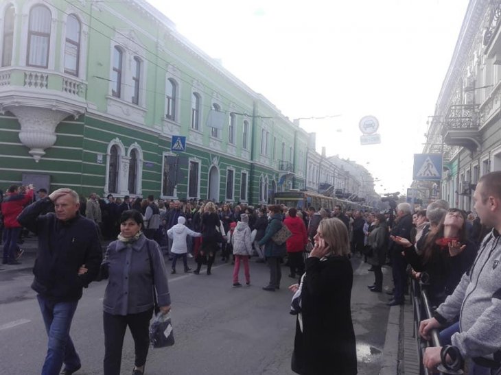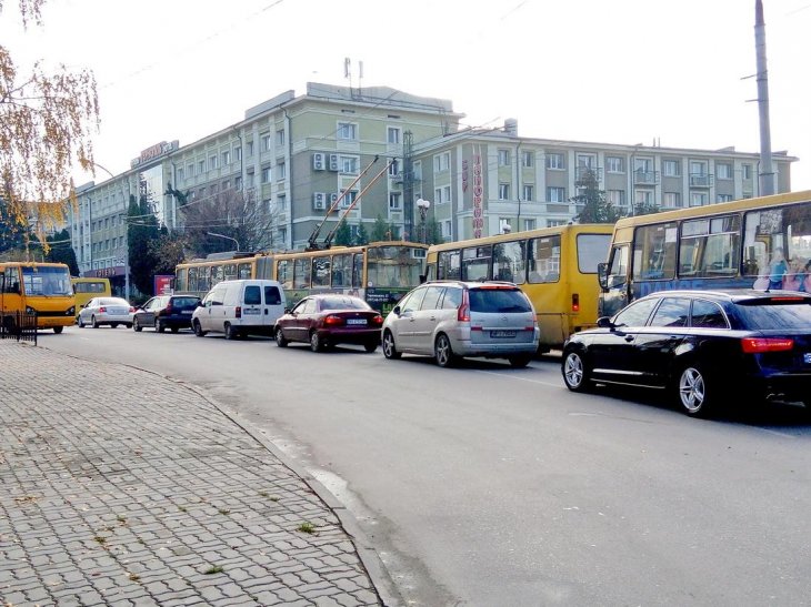 З 14 години люди безперервно рухаються по пішохідних переходах на вул. Замковій, Пирогова, а також центральній вулиці Руській. У зв'язку з цим паралізовано рух громадського транспорту. На вулицях міста в центрі - довгі затори, зазначено в публікації.
