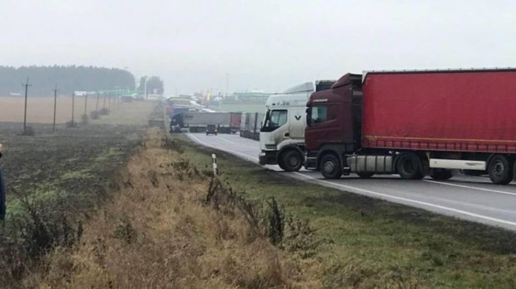 У прес-службі поліції також додали, що частина авто їде по узбіччі, об'їжджаючи перекриту трасу. Станом на 15:20 вантажівки розблокували трасу до кордону.