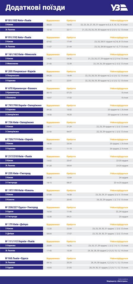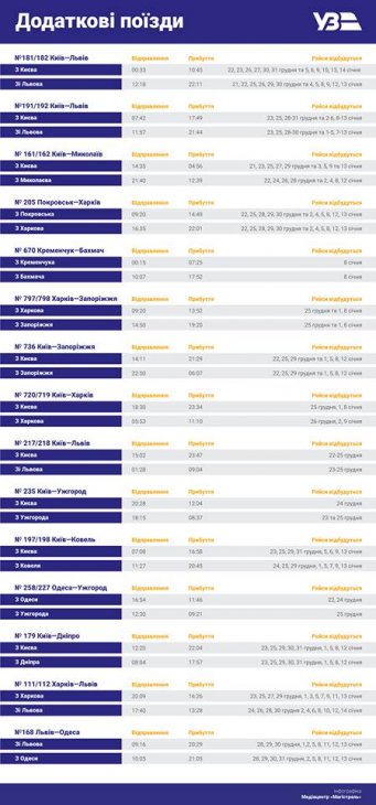 За його словами, щоб усі охочі змогли доїхати до місць відпочинку та зустріти свята у колі рідних та близьких, «Укрзалізниця» планує призначити загалом 30 додаткових потягів.