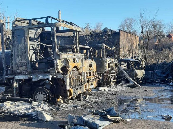 “Вогнем знищено чотири автоцистерни для скрапленого газу, шість вантажних та вісім легкових автомобілів. Пошкоджено вісім легкових та два вантажних автомобілі, покрівлю будівлі колишньої СТО на площі 200 кв.м. Причину пожежі встановлюють спеціалісти”, – кажуть у прес-службі ГУ ДСНС Кіровоградської області.