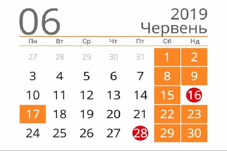 У шостому місяці 2019 року українців двічі очікуватимуть тривалі вихідні.