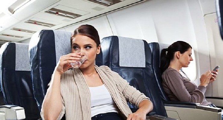 Любителям відновлювати баланс рідини за допомогою солодкої газованої води варто врахувати, що в польоті це далеко не найкращий варіант. По-перше, солодка вода погано тамує спрагу, а по-друге, має сечогінний ефект, тобто фактично збільшують втрату води організмом. Те ж стосується кави й алкоголю. Якщо замовляєте ці напої на борту літака, попросіть подати до них трохи води. Або віддайте перевагу зеленому чаю.