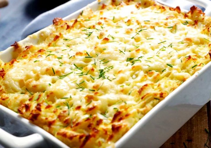 - На неї викладіть третину сиру. Повторіть з рештою картоплі і сиром, закінчіть сиром.