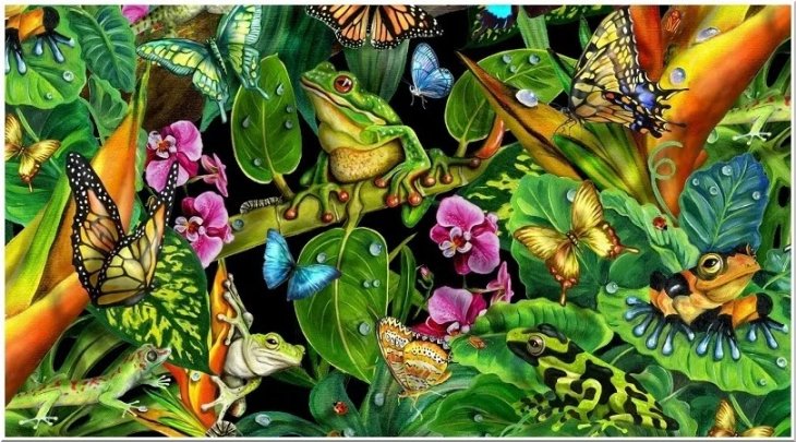 Вам потрібно подивитися на картинку, розташовану нижче. А після цього, відповісти на питання – яку тварину найпершою ви помітили серед квіточок і листочків?